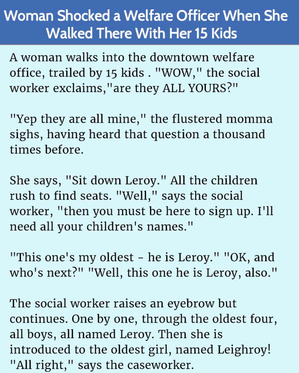 Jokes Woman with 15 kids… Sally Lopez March 4, 2020 Leave a Comment ADVERTISEMENT ADVERTISEMENT Views: 2,322 Related Posts:A woman comes home early, and finds her husband in bed with… Funny haha jokes lol
